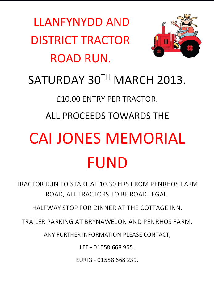 Llanfynydd YFC’s annual concert will be held at Pantglas Hall, Llanfynydd this Friday, 15th of March at 7:30pm. It will include a performance of a drama and other various items. Compere – John Gwynne, and the president – Mrs Susan Childs. Entry – £5. Primary School Children – free. Tickets are available at The Cottage Inn, Jones Dancapel, Catrin Anna (07414 799 605) , Elin Rees (07979 786 697) or possible to pay at the door. A warm welcome to all.